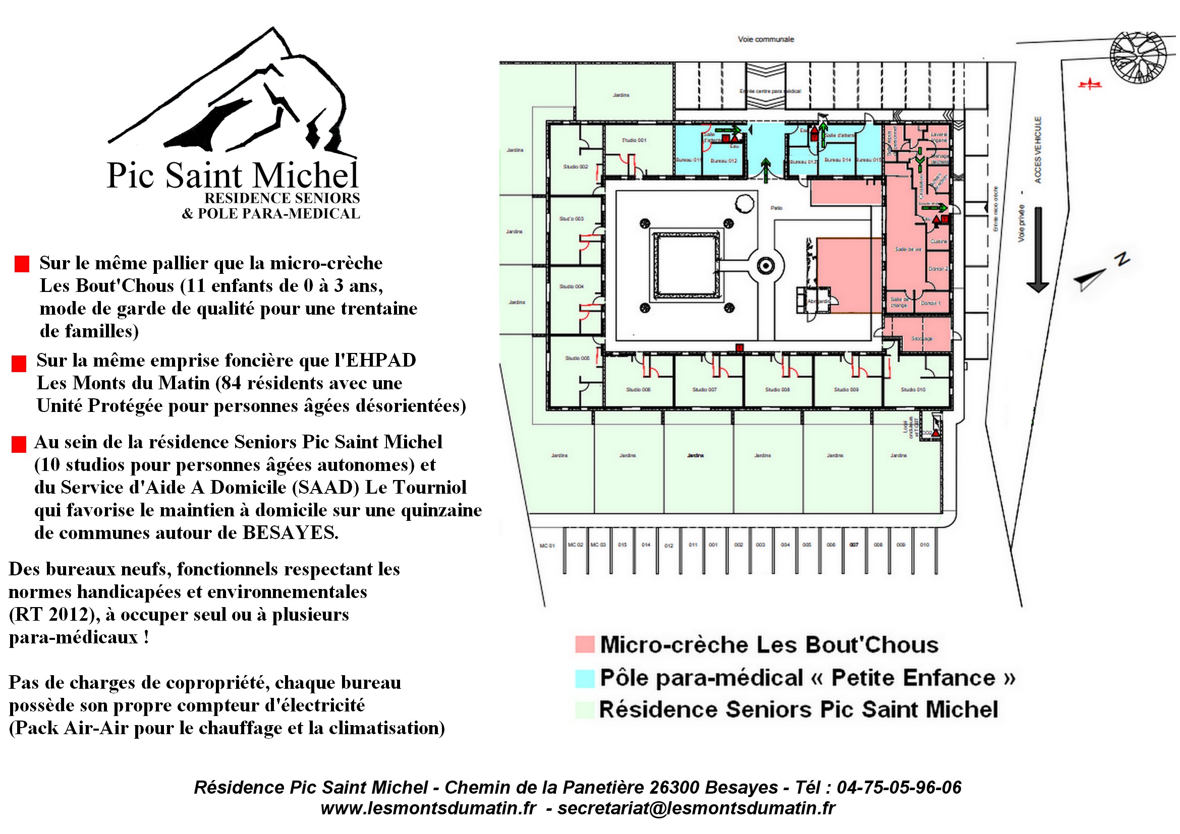 La possibilité unique de travailler avec plusieurs tranches d'âge (le grand âge et la grande dépendance avec l'EHPAD des Monts du Matin, la petite enfance avec la micro-crèche) et de favoriser le maintient à domicile des personnes âgées au travers du SAAD Le Tourniol et des logements intermédaires (Résidence Seniors PIC SAINT MICHEL)